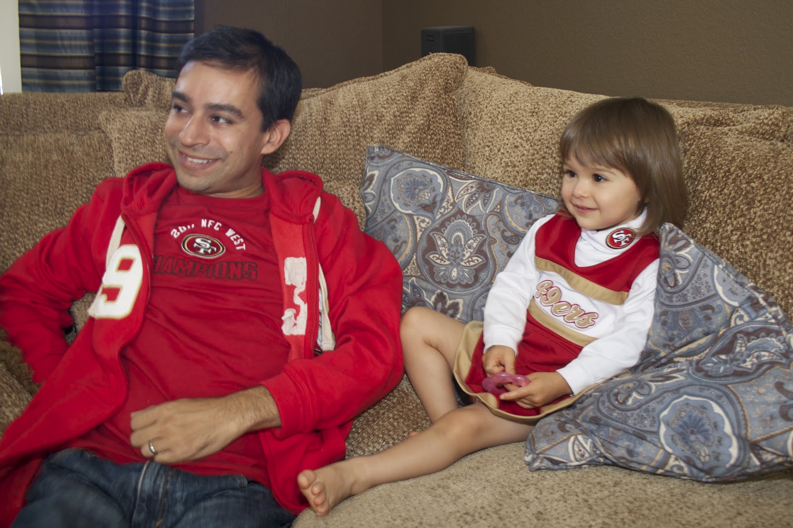 This post is just filler; the real reason I'm posting is to show the world this adorable picture of Katie and Dada, chillin' on the couch watching the 49ers. (And no, the skirt really isn't that short, it's just hiked up a little funny because she slid down the couch. It's a modest length.)